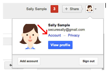 - Masuk ke laman setelan Akun Google Anda dengan mengeklik nama atau foto Anda di pojok kanan atas layar lalu klik Akun.