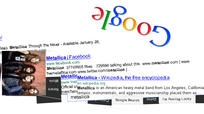 Google Sphere, tulisan yang berada pada google akan memutar seperti bumi, coba mainkan pula jari anda dengan mouse atau mousepad
